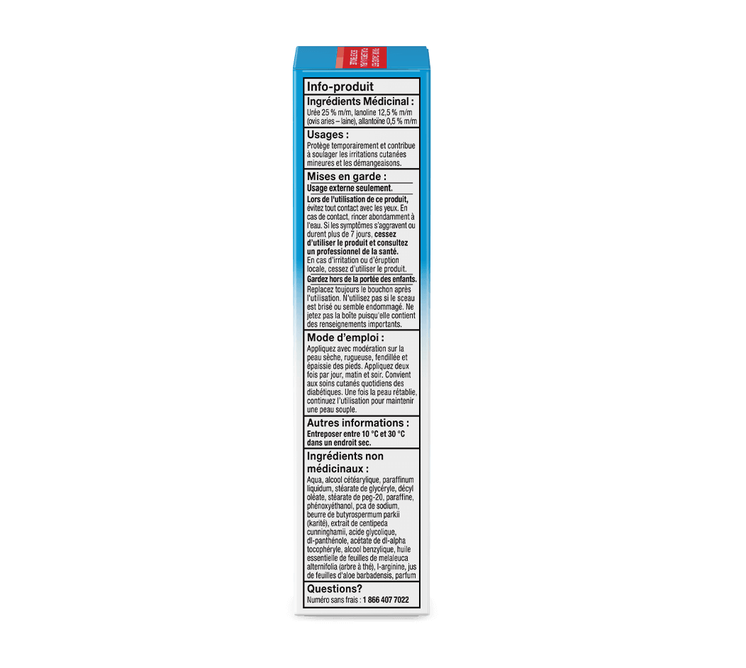 Ingrédients médicinaux: Urea 25% w/w, Lanolin 12.5% w/w, Allantoin 0.5% w/w